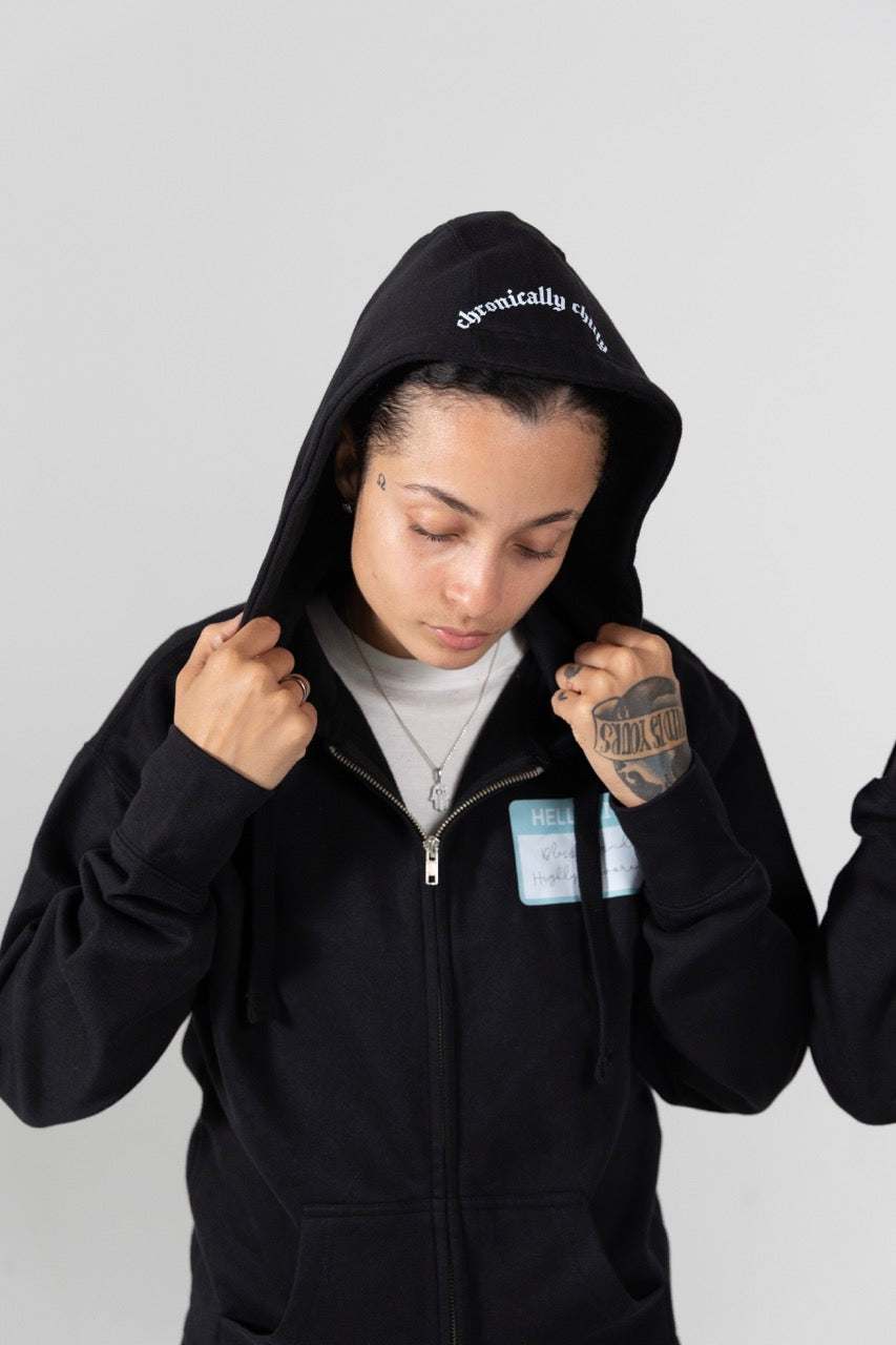 Wrap yourself in faith, comfort, and effortless style with the Blessed and Highly Favored Zip Hoodie from Poppy + Monarch. This zip‑up hoodie keeps things easy and casual yet intentional, with clean lines and a subtle leather logo patch on the left chest to elevate the look. The front features the iconic “Hello, I’m Blessed and Highly Favored” name tag, while the back showcases the powerful declaration: “Drippin in Favor From My Designer”