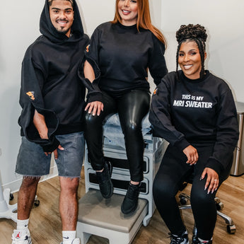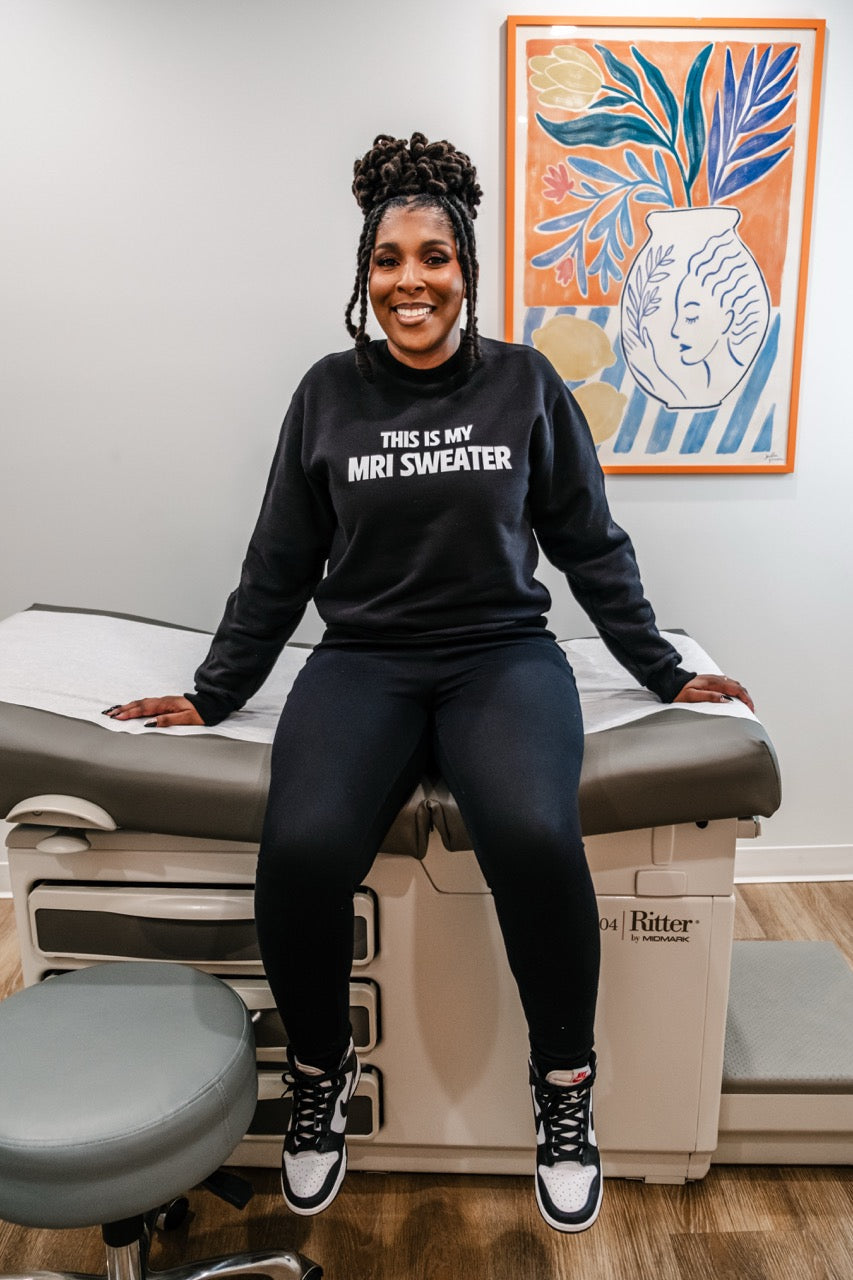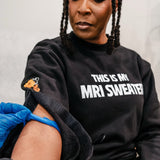 The This Is My MRI Sweater Crewneck is an extension of our MRISWTR™ product line. When you slip on this MRISWTR™, you’re giving yourself permission to smile through the scan. That phrase says, “Yes — I’m walking into that machine, but I’m bringing my own style, my own strength, and a sprinkle of sass.”